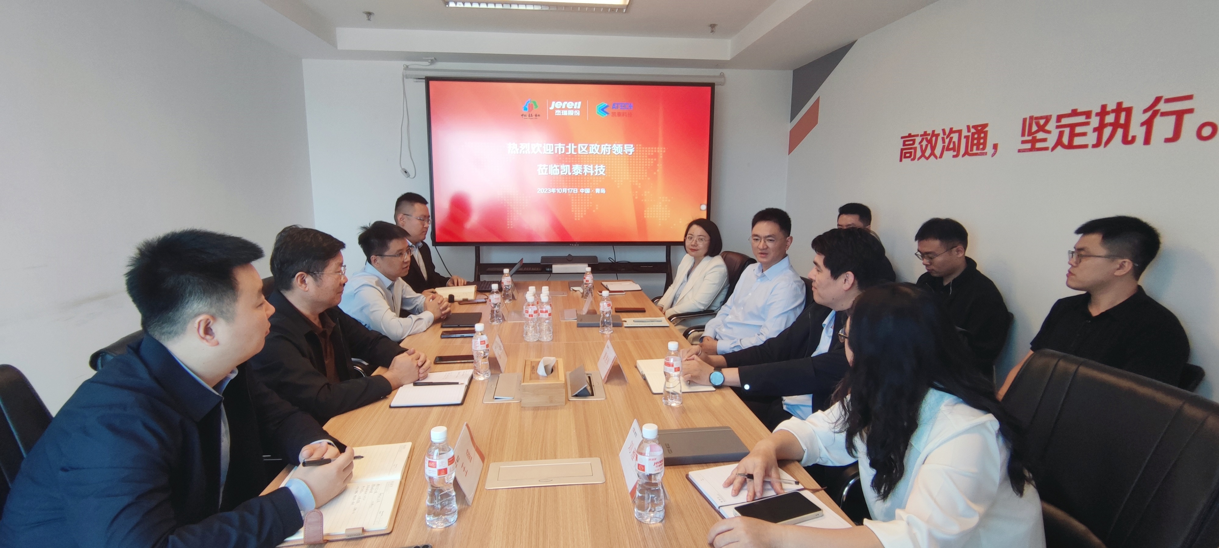 2023年10月17日,青岛市市北区副区长严俊、科技局局长夏进科、工信局党组书记刘婧、统计局副局长刘雁平等领导到访多宝登录平台科技参观考察,并就公司发展座谈交流。