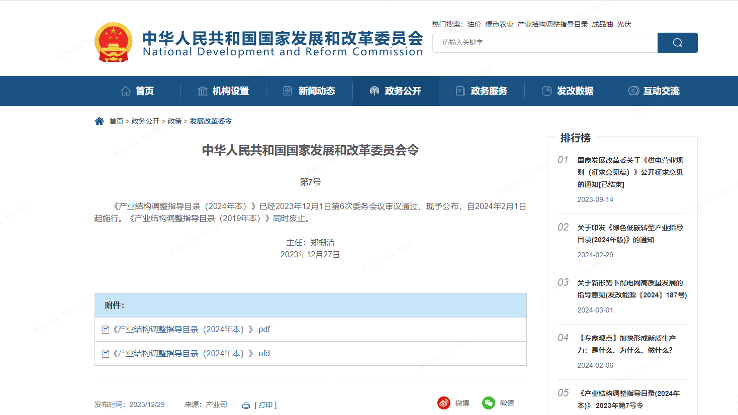 日前,国家发改委公布《产业结构调整指导目录(2024年本)》,自2024年2月1日起施行。《产业结构调整指导目录(2019年本)》同时废止。